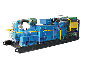 压缩机组的动力为柴油机或电机,为双输出轴。低压螺杆压缩机和高压活塞压缩机分别装在驱动器的两个输出轴上。系统中各级冷却器和柴油机由闭式循环水冷却,机组设有高效板翘式大型水箱,通过风冷进行二次热交换,以满足机组热交换要求。机组安装在同一底价上,整体设计结构紧凑、体积小、能够满足用户需求。
